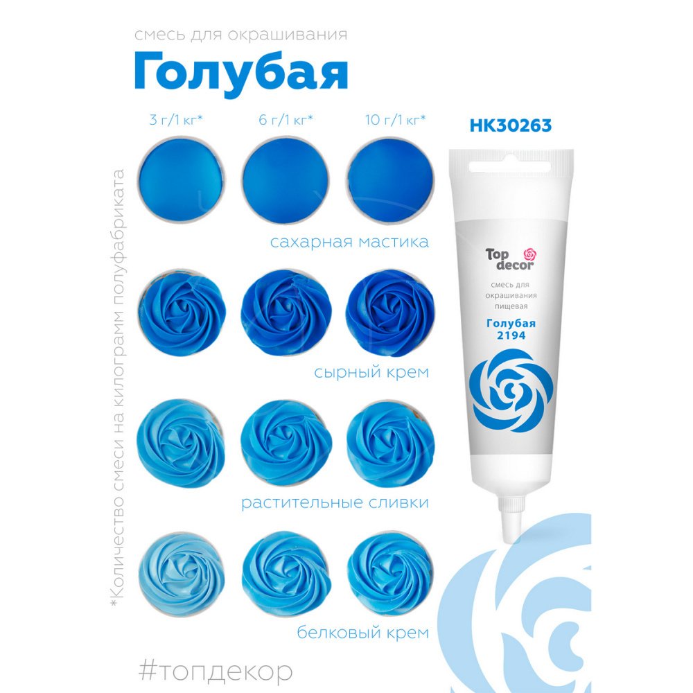 Доставка Краситель пищевой гелевый водорастворимый Top Decor "Голубой" 100 г из магазина в вашем городе: