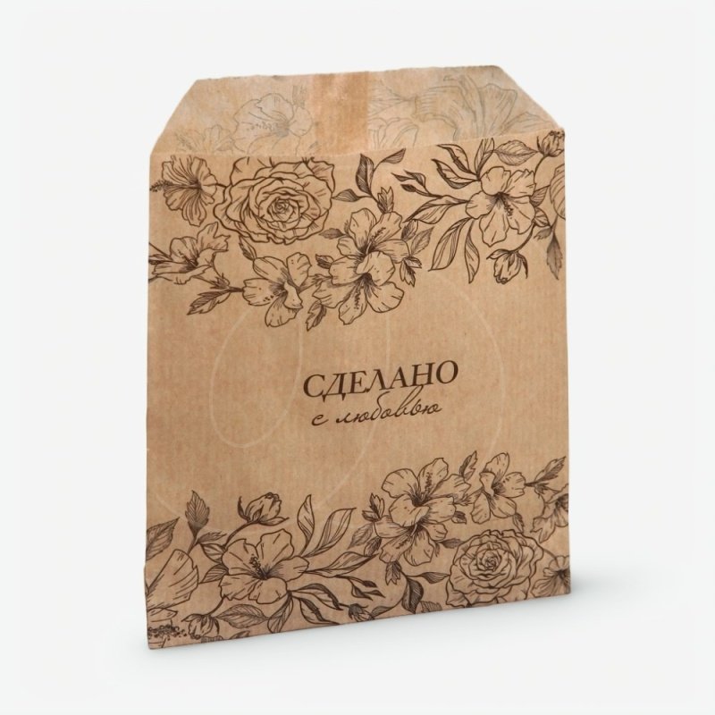 Доставка Пакет бумажный для сладостей "Сделано с любовью" 13х16 см из магазина в вашем городе: