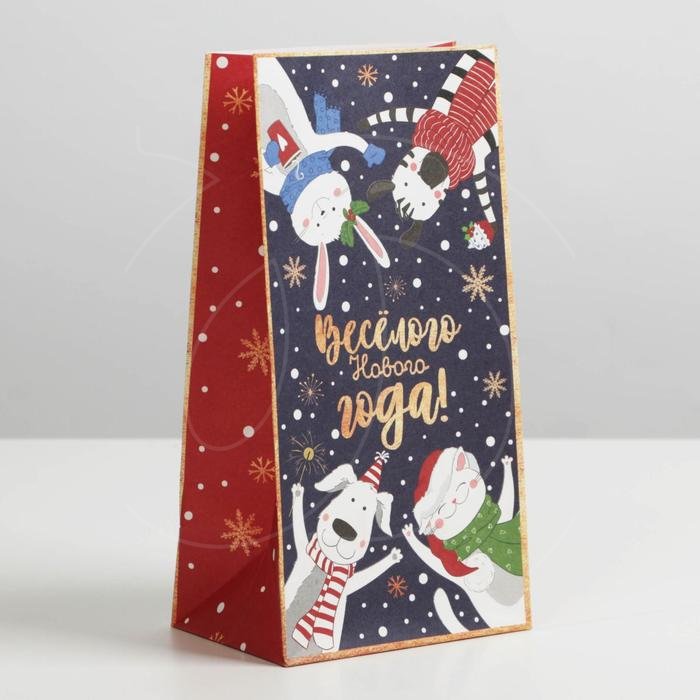Пакет бумажный "Весёлый Новый год" 10х19,5х7 см