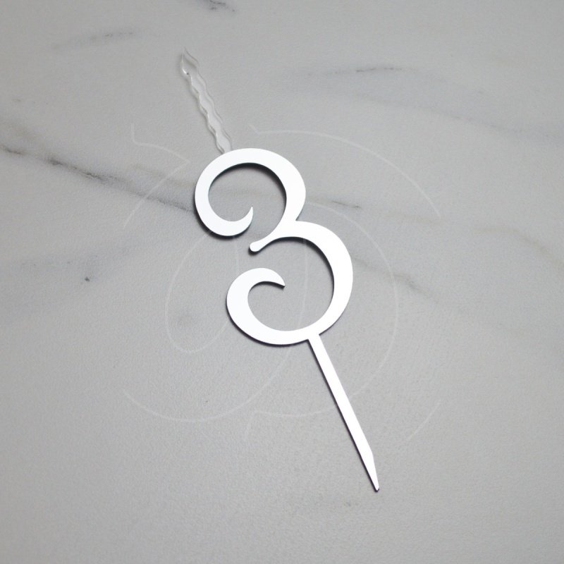 Доставка Свеча-топпер декоративная акриловая Цифра "3" Серебро из магазина в вашем городе: