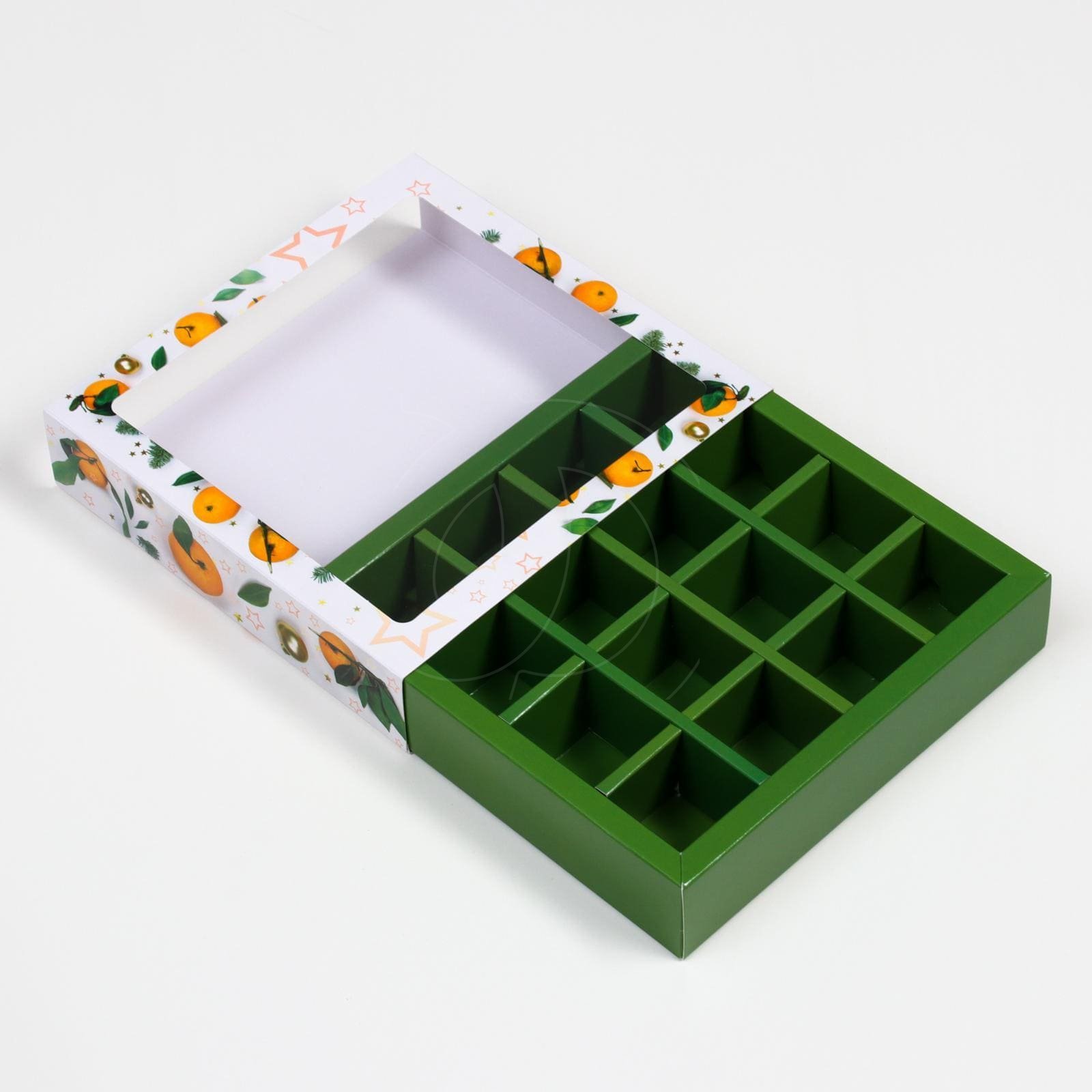 Доставка Коробка на 16 конфет с окном "Мандарины" 17,7х17,7х3,8 см из магазина в вашем городе: